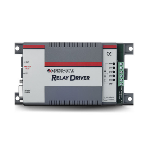 The Relay Driver from Morningstar provides high level system control functions such as high/low voltage alarms, load control, and generator start. This product controls four independent relay driver outputs by reading digital data inputs from Morningstar’s TriStar controller or by reading battery voltage when used in systems with other controllers.
