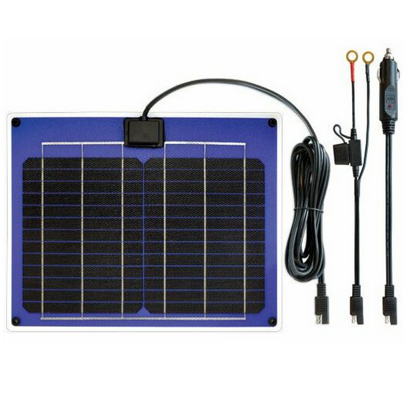 The Samlex SC-10 SunCharger maintains the charge in any 12V battery using energy from the sun. This 10 watt portable solar panel connects through 12V power plug or directly to battery with ring terminals. Perfect for battery maintenance when your car, boat, truck, ATV or RV is in storage.