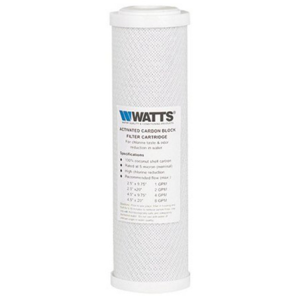Watts WCBFF20 4.5 x 20 Inch Carbon Filter 5 Micron Coconut offers top-of-the-line coconut shell carbon block filter cartridge for chlorine, taste, odor and sediment reduction. Thick wall carbon construction for superior performance.