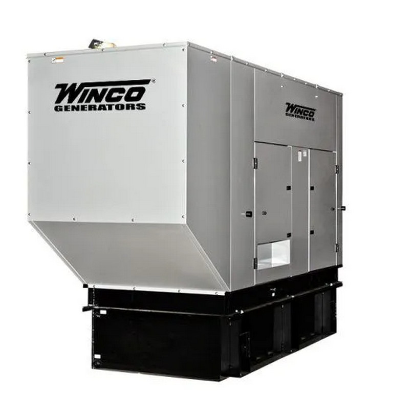 The WINCO DR175F4-03 is a 167kW diesel generator outputting at 120/240V (single-phase) and rated to handle 695 Amps of current. Sound output is measured at 77 dB(A) at 7 meters (23 feet) with weather housing. UL2200 listed.
