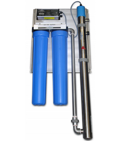 The Wyckomar SYS700-POU-2 240V Pre-Assembled Water Treatment System 8 GPM unit that is sized for the needs of the average household (up to 6 people) or cottage to provide complete purified drinking water for domestic use. Typically installed at the point of use, it is used for treating municipal water as well as ground water from drilled or dug wells, and surface water from lakes, ponds or rivers. It will purify the water from most contaminants such as sediments, rust and pesticides with filtration down to 5 micron. Carbon filtration reduces taste and odour, including sulphur smell and chlorine residuals.